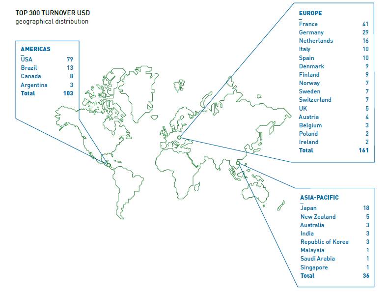 El informe también señala que los sectores con mayor peso dentro del Top 300 son la agricultura y la alimentación, que concentran el 35,7 % del volumen de negocios total, y los seguros, con el 31,7 %, áreas donde las cooperativas de las Américas tienen una participación particularmente relevante, especialmente en Estados Unidos y Brasil.