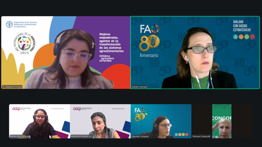 Uno de los ejes del encuentro fue el valor de las alianzas estratégicas para avanzar frente a estos desafíos. Desde FAO se destacó la importancia de la cooperación entre múltiples actores, incluido el movimiento cooperativo, para construir soluciones territoriales, y se repasaron hitos de colaboración entre la organización y el movimiento cooperativo regional que incluye procesos de incidencia, marcos de cooperación y acciones conjuntas desarrolladas particularmente en el contexto del Año Internacional de las Cooperativas 2025.