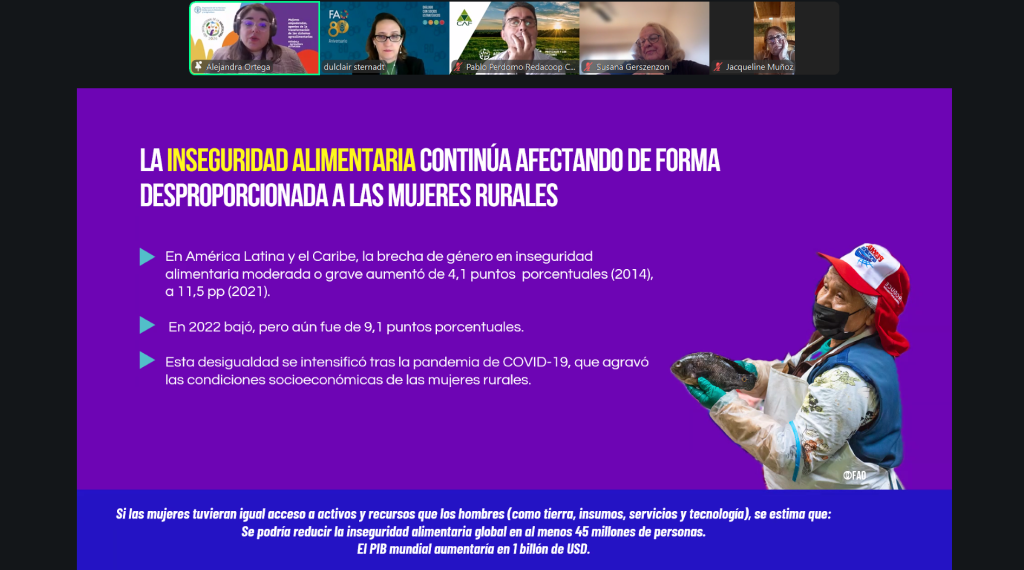 En este primer webinar, Mujeres Agricultoras en las Américas: Realidades, Desafíos y Tendencias Regionales, se contó con la participación de Alejandra Ortega Guzmán, especialista en transversalización de género y empoderamiento de las mujeres rurales, y Dulclair Sternadt, Oficial Regional de Alianzas, ambas de la Organización de las Naciones Unidas para la Alimentación y la Agricultura (FAO), quienes compartieron datos y marcos de análisis sobre la situación actual de las mujeres agricultoras en la región.